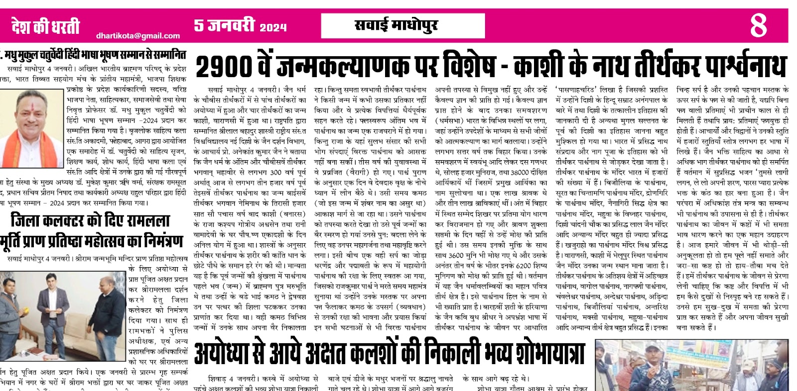 जैन धर्म के चौबीस तीर्थंकरों में से पांच तीर्थंकरों का अयोध्या में हुआ और चार तीर्थंकरों का जन्म काशी,वाराणसी में हुआ था | जैन धर्म के अंतिम और चौबीसवें तीर्थंकर भगवान् महावीर से लगभग ३०० वर्ष पूर्व अर्थात् आज से लगभग तीन हज़ार वर्ष पूर्व तेइसवें तीर्थंकर पार्श्वनाथ का जन्म बाईसवें तीर्थकर भगवान नेमिनाथ के तिरासी हजार सात सौ पचास वर्ष बाद काशी (बनारस) के राजा काश्यप गोत्रीय अश्वसेन तथा रानी वामादेवी के घर पौषकृष्ण एकादशी के दिन अनिल योग में हुआ था। शास्त्रों के अनुसार तीर्थंकर पार्श्वनाथ के शरीर की कांति धान के छोटे पौधे के समान हरे रंग की थी। मान्यता यह है कि पूर्व जन्मों की श्रृंखला में पार्श्वनाथ पहले भव (जन्म) में ब्राह्मण पुत्र मरुभूति थे तथा उन्हीं के बडे़ भाई कमठ ने द्वेषवश उन पर पत्थर की शिला पटककर उनका प्राणांत कर दिया था। वही कमठ विभिन्न जन्मों में उनके साथ अपना वैर निकालता रहा। किन्तु समता स्वभावी तीर्थंकर पार्श्वनाथ ने किसी जन्म में कभी उसका प्रतिकार नहीं किया और वे प्रत्येक विपत्तियां धैर्यपूर्वक सहन करते रहे। फलस्वरूप अंतिम भव में पार्श्वनाथ का जन्म एक राजघराने में हो गया। किन्तु राजा के यहां सुलभ संसार की सभी भोग संपदाएं विरक्त पार्श्वनाथ को आसक्त नहीं बना सकीं। तीस वर्ष की युवावस्था में वे प्रव्रजित (वैरागी) हो गए ।